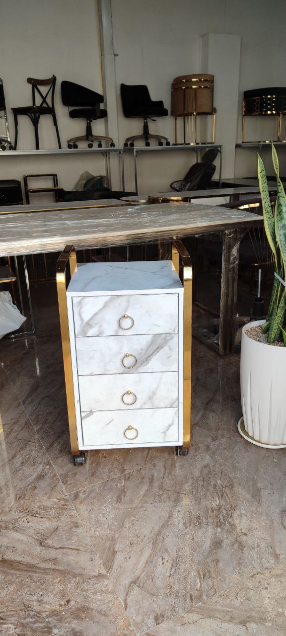 مشخصات اصلیرنگ بدنه / سفید و مشکی ماربل / سفید و مشکی سادهرنگ فلز / آبکاری طلایی و سیلور / الکترواستاتیک مشکی و سفیدمشخصات فرعیجنسMdf و فلزاندازه40*45 ارتفاع 85